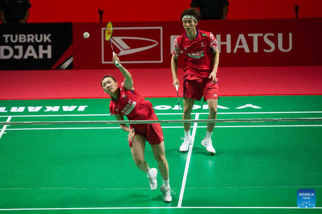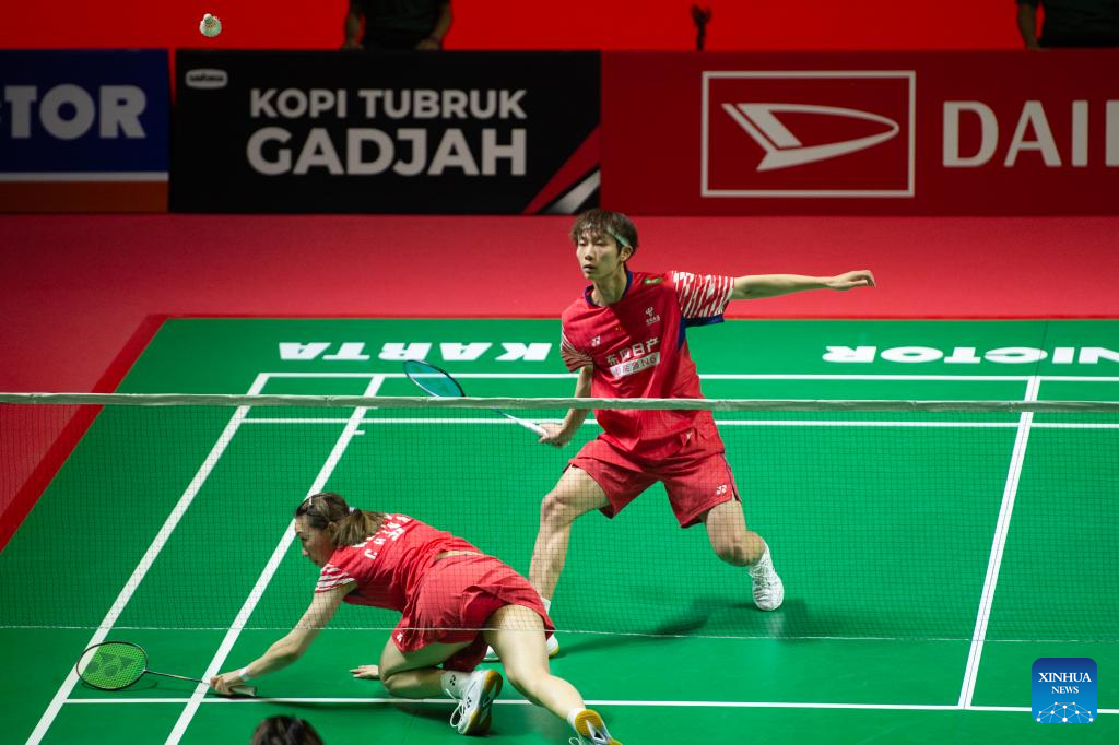 Jiang Zhenbang (L)/Wei Yaxin of China compete during the mixed doubles semifinal match against Chen Tang Jie/Toh Ee Wei of Malaysia at the Indonesia Masters 2026 badminton tournament in Jakarta, Indonesia, Jan. 24, 2026. (Xinhua/Veri Sanovri)