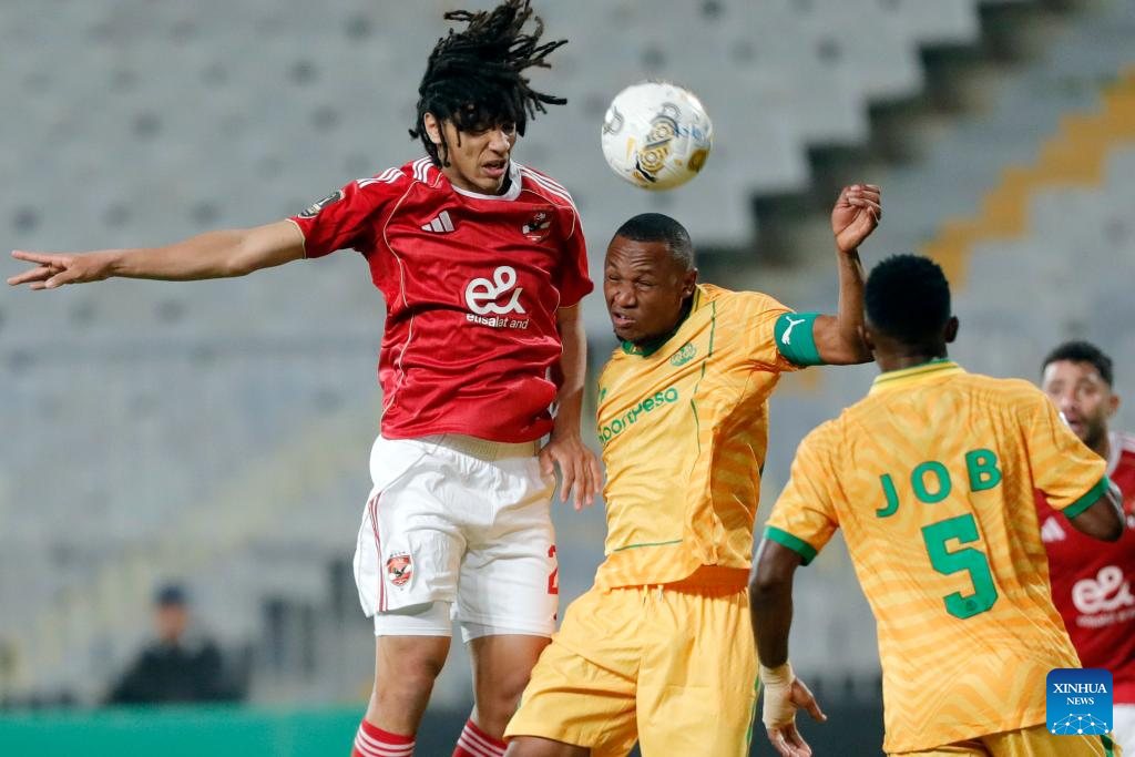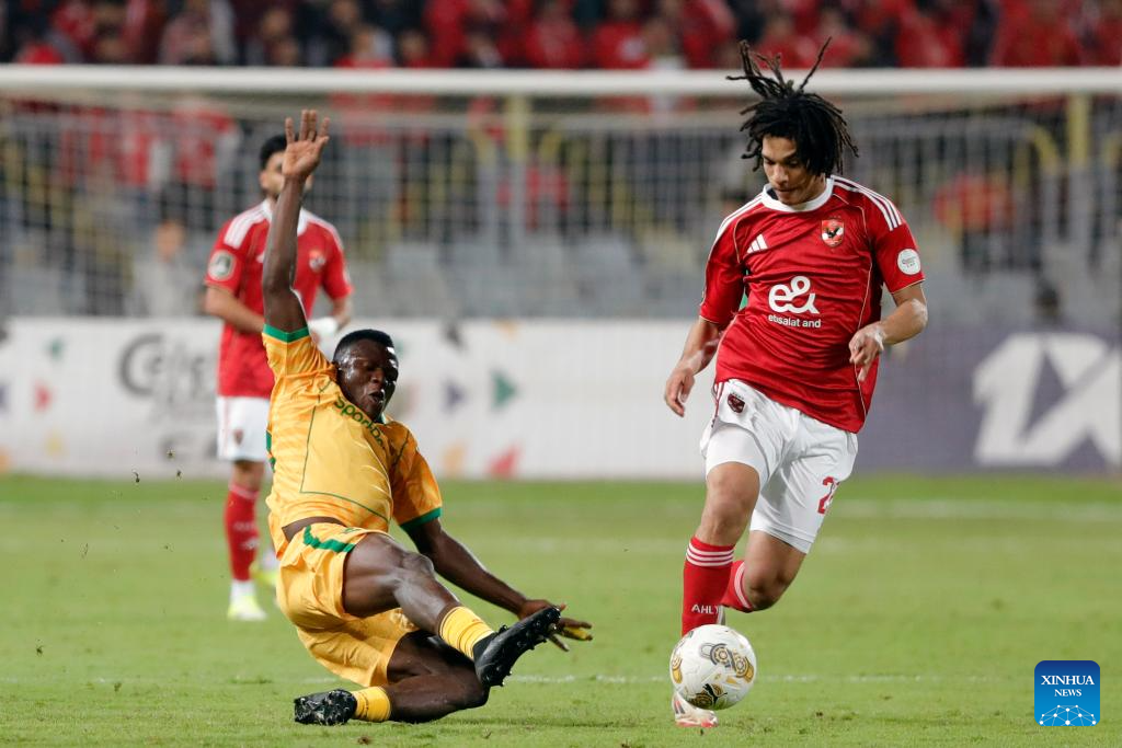 Al Ahly FC's Marwan Mohamed (R) competes during the CAF Champions League Group B match between Al Ahly FC of Egypt and Young Africans of Tanzania in Alexandria, Egypt, Jan. 23, 2026. (Xinhua/Ahmed Gomaa)