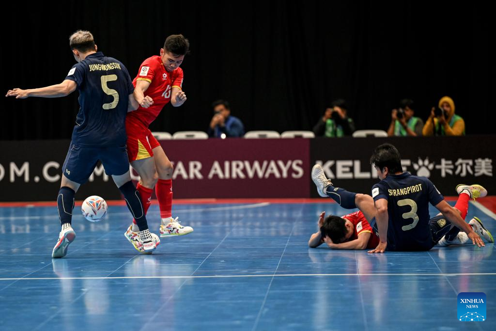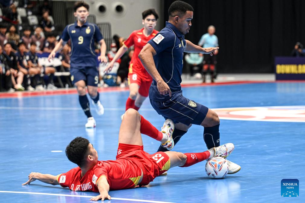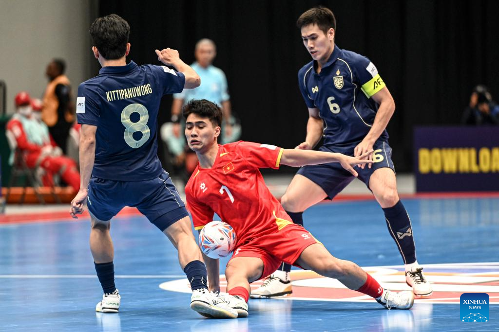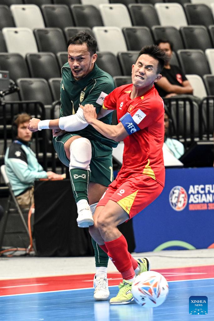 Nguyen Da Hai (C) of Vietnam competes during the group B match between Thailand and Vietnam at the AFC Futsal Asian Cup 2026 in Jakarta, Indonesia, Jan. 31, 2026. (Xinhua/Agung Kuncahya B.)