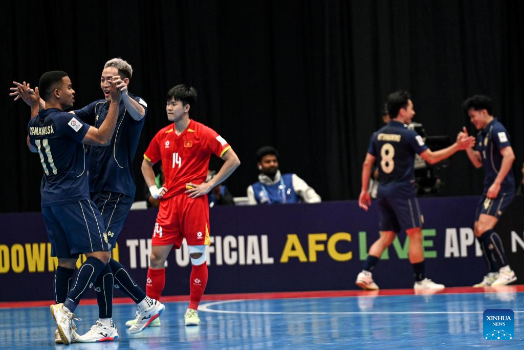 Players of Thailand celebrate during the group B match between Thailand and Vietnam at the AFC Futsal Asian Cup 2026 in Jakarta, Indonesia, Jan. 31, 2026. (Xinhua/Agung Kuncahya B.)