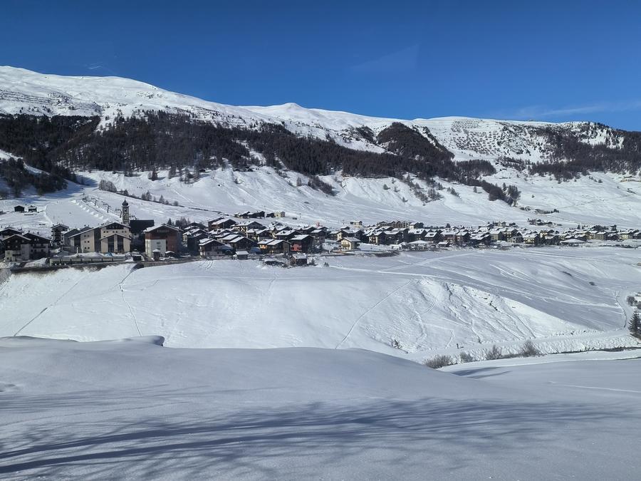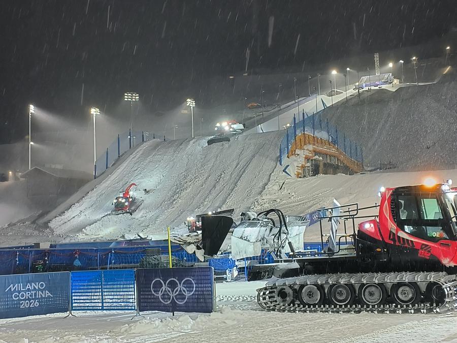 LIVIGNO, Italy, Feb. 4 (Xinhua) -- Snow drifted steadily across Livigno on Tuesday, frosting rooftops and pine-lined slopes in fresh white and lending a dreamlike glow to the high-Alpine town as it counts down to the opening of the Milan-Cortina 2026 Winter Olympics on Friday.