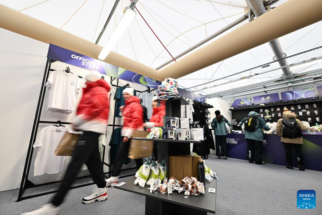 Photo taken on Feb. 3, 2026 shows the official store at the Cortina D'Ampezzo Olympic & Paralympic Village ahead of the 2026 Milan-Cortina Winter Olympics in Cortina D'Ampezzo, Italy, Feb. 3, 2026. (Xinhua/Lian Yi)