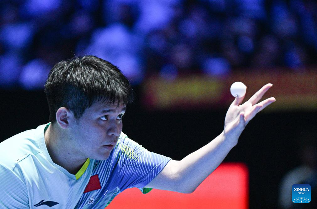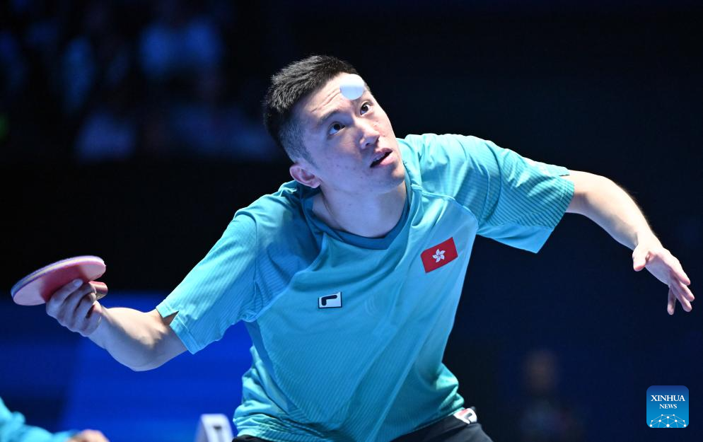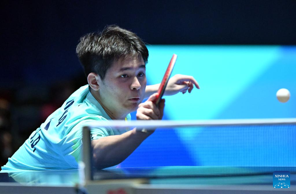 Lam Siu Hang hits a return during the men's singles group match between Lam Siu Hang of China's Hong Kong and Uda Yukiya of Japan at the ITTF-ATTU Asian Cup Haikou 2025 table tennis tournament in Haikou, south China's Hainan Province, Feb. 4, 2026. (Xinhua/Guo Cheng)