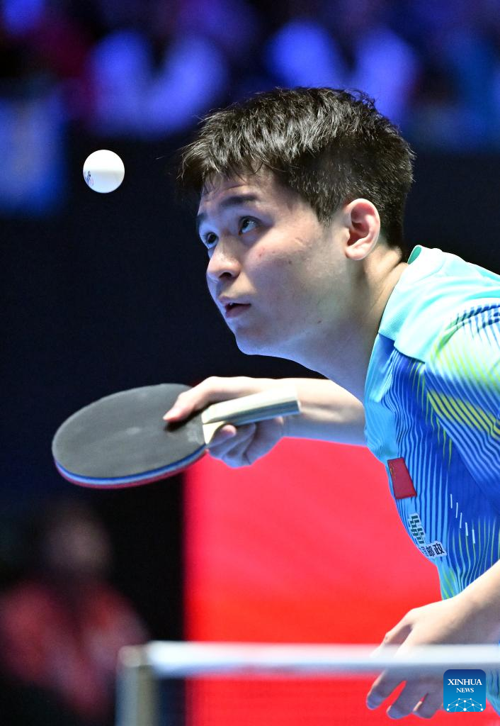 Lin Shidong hits a return during the men's singles group match between Lin Shidong of China and Snehit Suravajjula of India at the ITTF-ATTU Asian Cup Haikou 2025 table tennis tournament in Haikou, south China's Hainan Province, Feb. 4, 2026. (Xinhua/Guo Cheng)