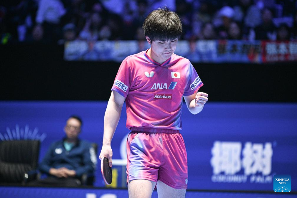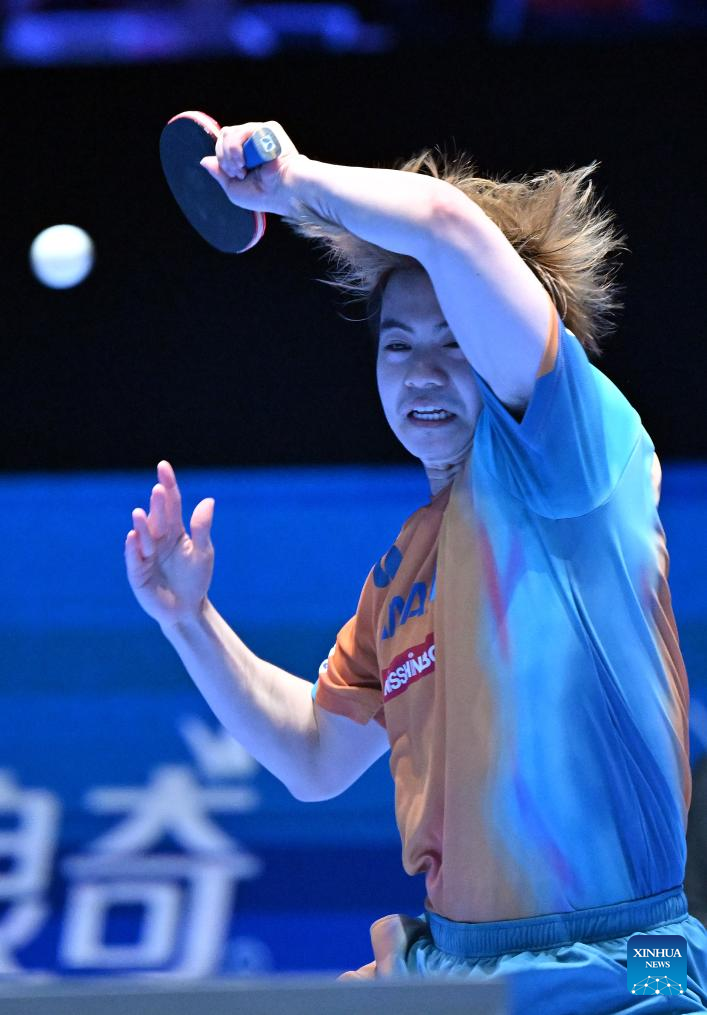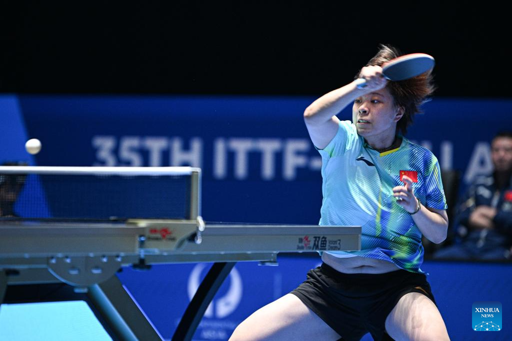 Wang Yidi hits a return during the women's singles group match between Wang Yidi of China and Ser Lin Qian of Singapore at the ITTF-ATTU Asian Cup Haikou 2026 table tennis tournament in Haikou, south China's Hainan Province, Feb. 4, 2026. (Xinhua/Pu Xiaoxu)