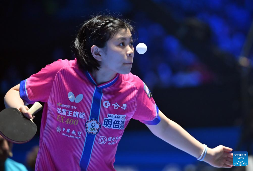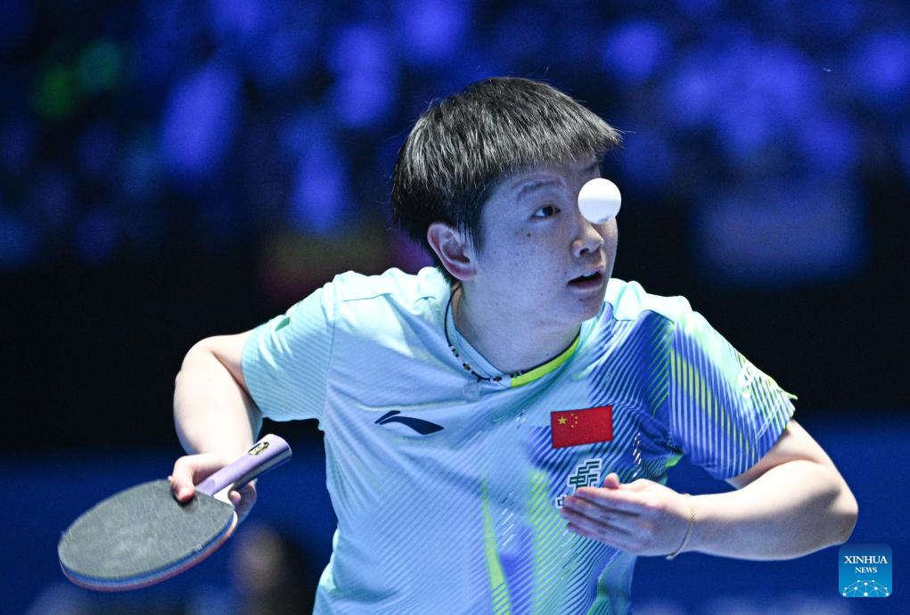 Sun Yingsha hits a return during the women's singles group match between Sun Yingsha of China and Yeh Yi-Tian of Chinese Taipei at the ITTF-ATTU Asian Cup Haikou 2025 table tennis tournament in Haikou, south China's Hainan Province, Feb. 4, 2026. (Xinhua/Guo Cheng)