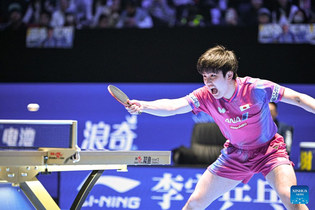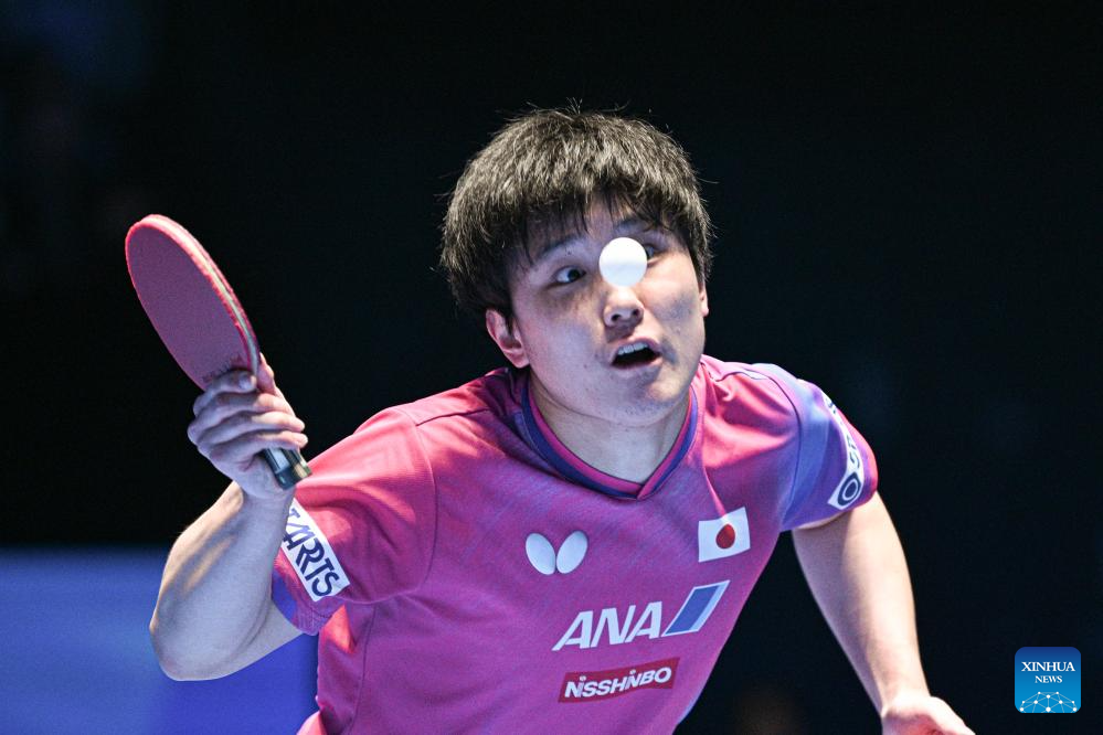 Uda Yukiya hits a return during the men's singles group match between Lam Siu Hang of China's Hong Kong and Uda Yukiya of Japan at the ITTF-ATTU Asian Cup Haikou 2025 table tennis tournament in Haikou, south China's Hainan Province, Feb. 4, 2026. (Xinhua/Guo Cheng)