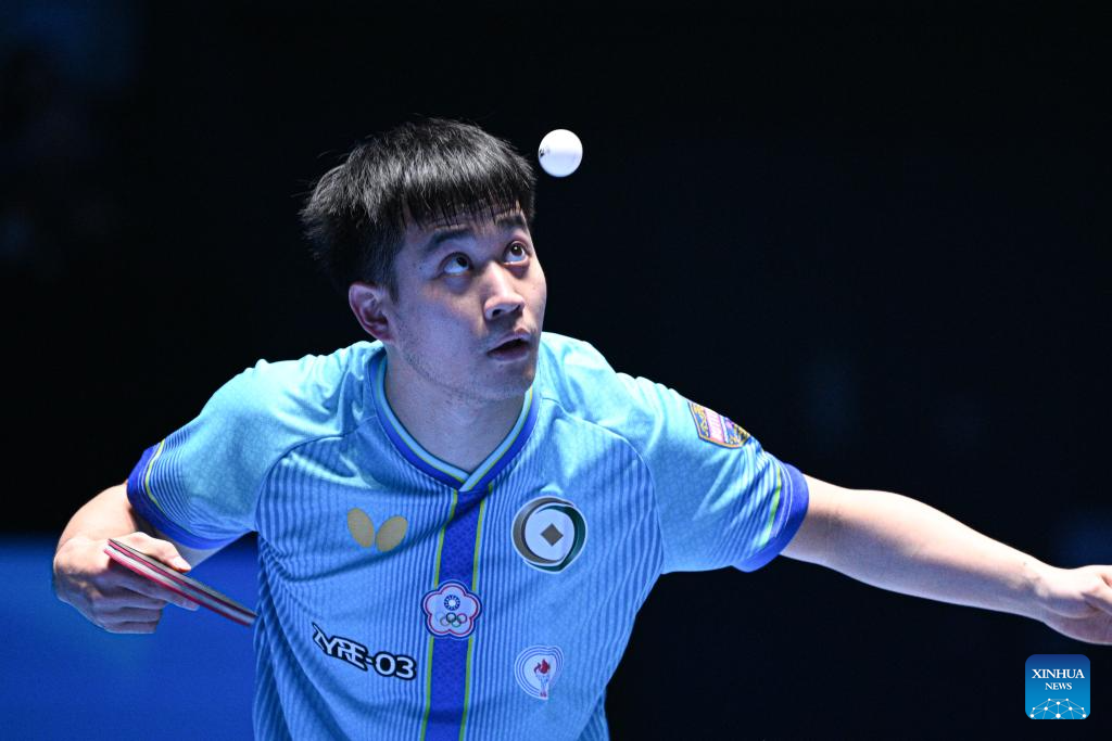 Liao Cheng-Ting serves during the men's singles group match between Harimoto Tomokazu of Japan and Liao Cheng-Ting of Chinese Taipei at the ITTF-ATTU Asian Cup Haikou 2026 table tennis tournament in Haikou, south China's Hainan Province, Feb. 4, 2026. (Xinhua/Pu Xiaoxu)