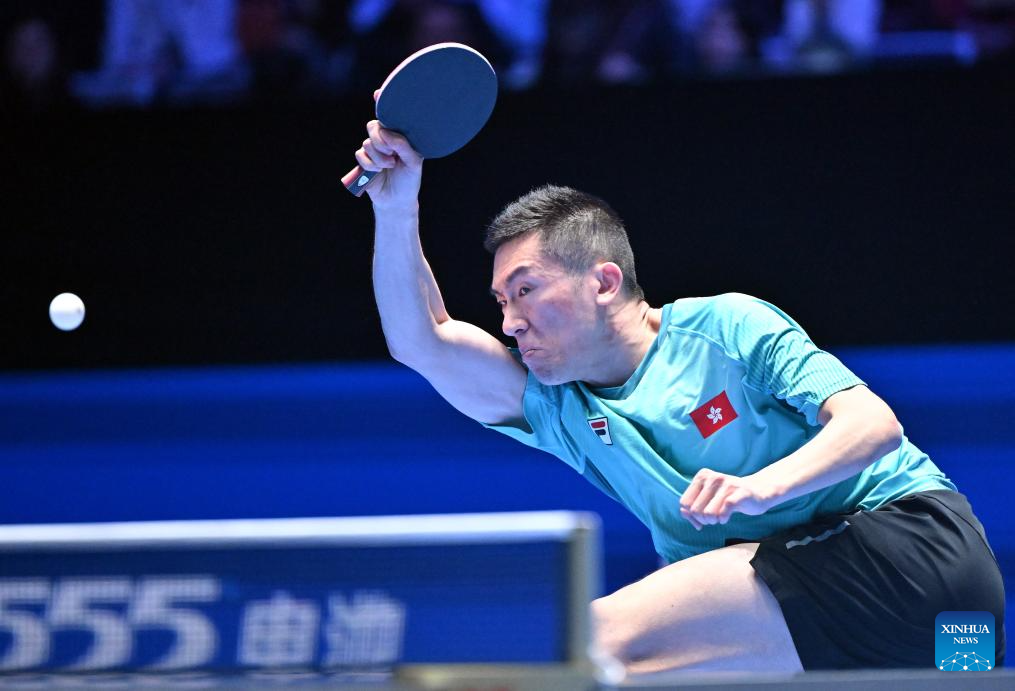 Lam Siu Hang hits a return during the men's singles group match between Lam Siu Hang of China's Hong Kong and Uda Yukiya of Japan at the ITTF-ATTU Asian Cup Haikou 2026 table tennis tournament in Haikou, south China's Hainan Province, Feb. 4, 2026. (Xinhua/Guo Cheng)