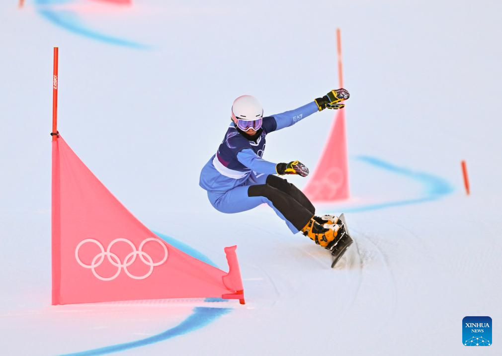 Elisa Caffont of Italy competes during the Snowboard Women's Parallel Giant Slalom Qualification at the Milan-Cortina 2026 Olympic Winter Games in Livigno, Italy, Feb. 8, 2026. (Xinhua/Zhang Hongxiang)