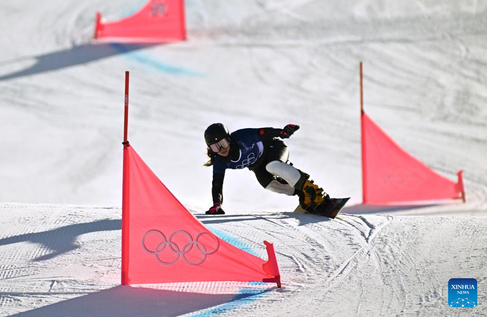 Gong Naiying of China competes during the Snowboard Women's Parallel Giant Slalom Qualification at the Milan-Cortina 2026 Olympic Winter Games in Livigno, Italy, Feb. 8, 2026. (Xinhua/Zhang Hongxiang)