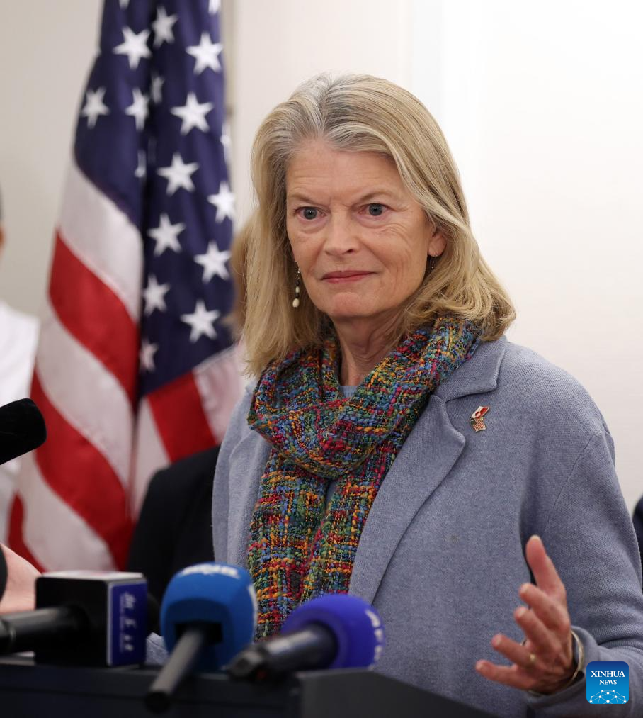 U.S. Republican Senator Lisa Murkowski of Alaska speaks during a press conference in Nuuk, Greenland's capital, an autonomous territory of Denmark, Feb. 9, 2026. A U.S. congressional delegation visiting Greenland on Monday dismissed U.S. President Donald Trump's claim that the island is "all over" with Russian and Chinese vessels, calling the assertion "not true." (Xinhua/Li Ying)