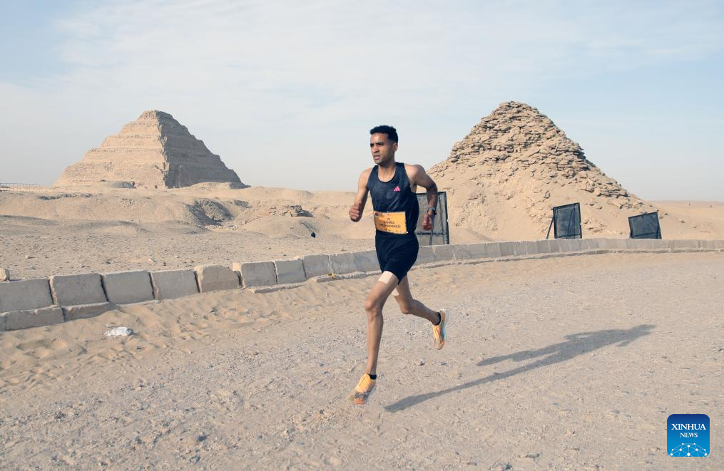 A runner participates in "the Saqqara Half Marathon" in the Saqqara necropolis, Giza, Egypt, Feb. 13, 2026. (Xinhua/Ahmed Gomaa)