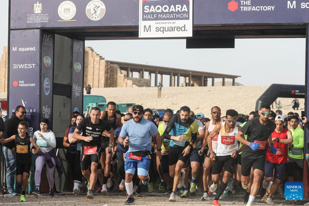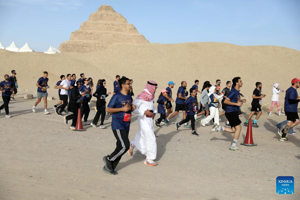 Runners participate in "the Saqqara Half Marathon" in the Saqqara necropolis, Giza, Egypt, Feb. 13, 2026. (Xinhua/Ahmed Gomaa)