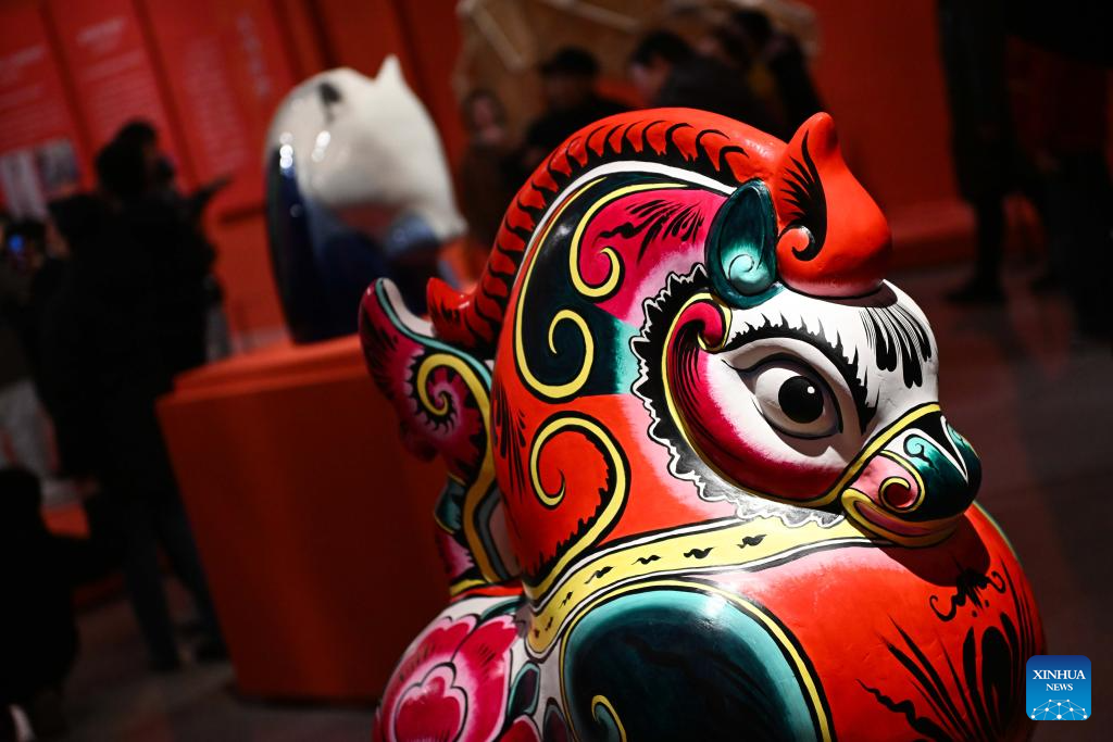 A horse-themed clay sculpture is displayed at a Spring Festival celebration exhibition in the Chinese Traditional Culture Museum in Beijing, capital of China, Feb. 15, 2026. (Xinhua/Chen Zhonghao)