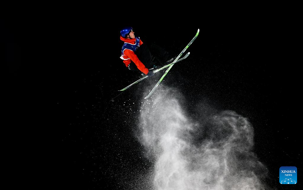 Ulrik Samnoey of Norway competes during the freestyle skiing men's big air qualification at the Milan-Cortina 2026 Olympic Winter Games in Livigno, Italy, Feb. 15, 2026. (Xinhua/Zhang Hongxiang)