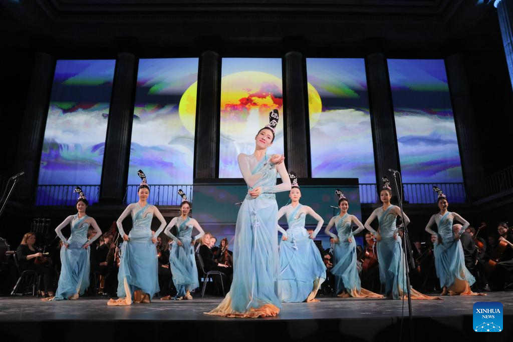 Chinese dancers perform during a concert staged to celebrate the Chinese New Year in St. Petersburg, Russia, Feb. 15, 2026. (Photo by Irina Motina/Xinhua)