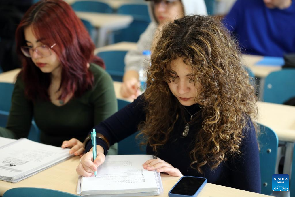 Students attend a Chinese language class at the Department of Chinese Language and Literature at Haci Bayram Veli University in Ankara, Türkiye, Feb. 16, 2026. Interest in Chinese language and literature has been growing among the Turkish public, mirroring China's economic and technological development, said an Ankara-based Turkish sinologist. (Mustafa Kaya/Handout via Xinhua)