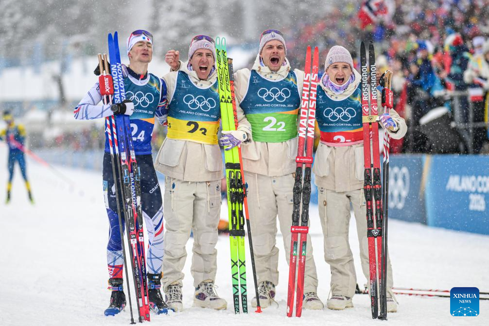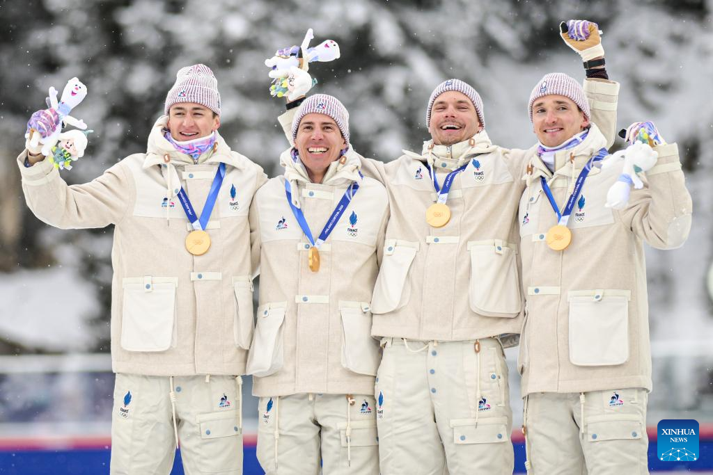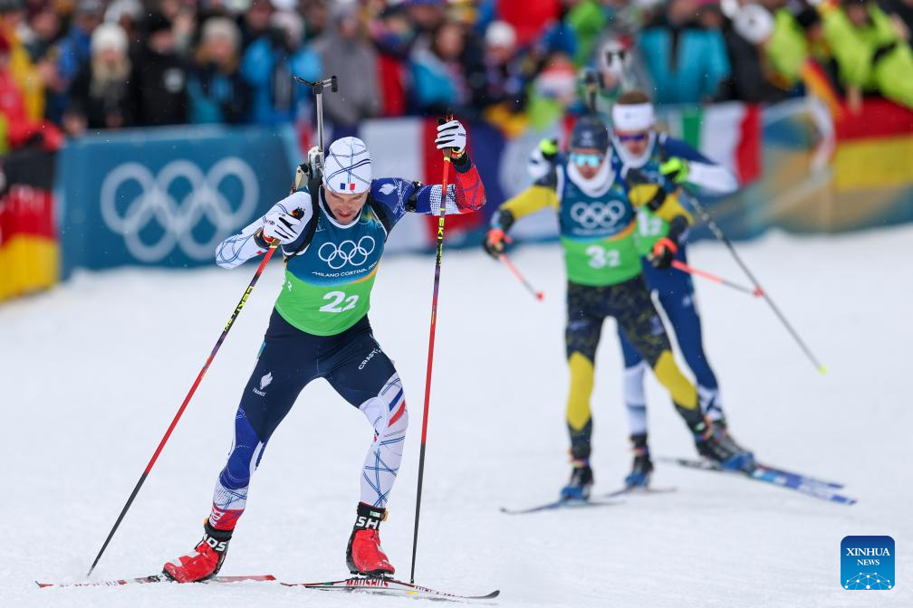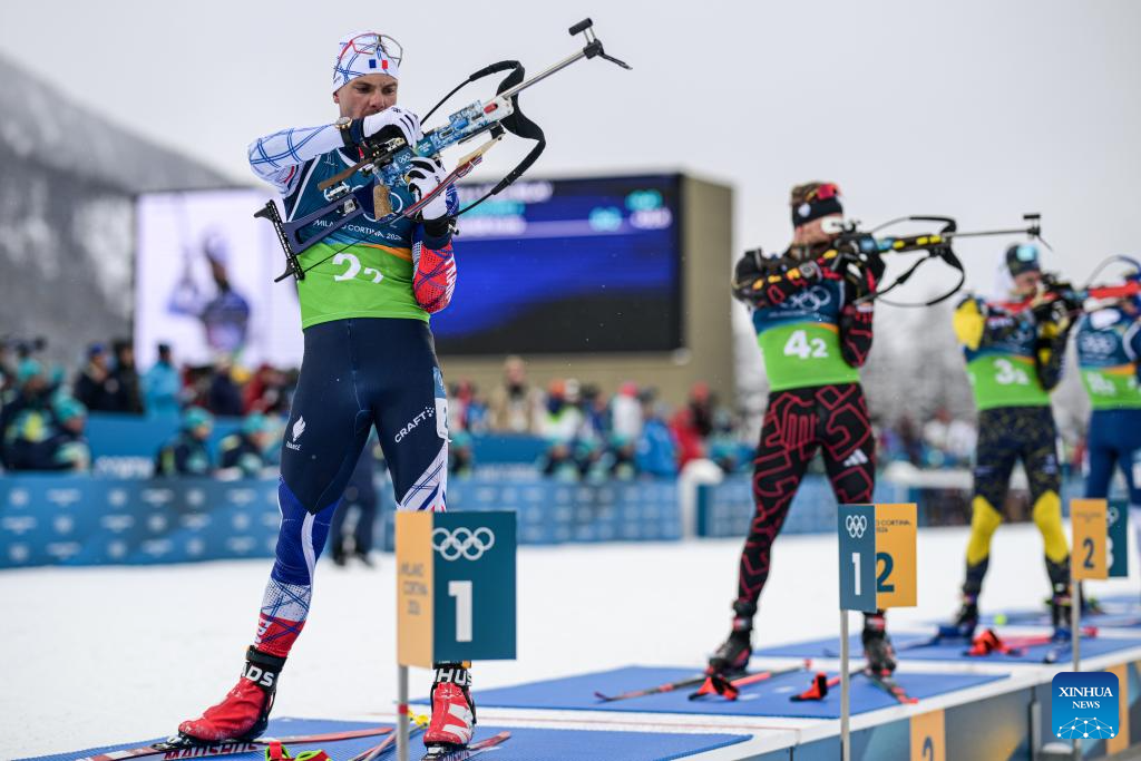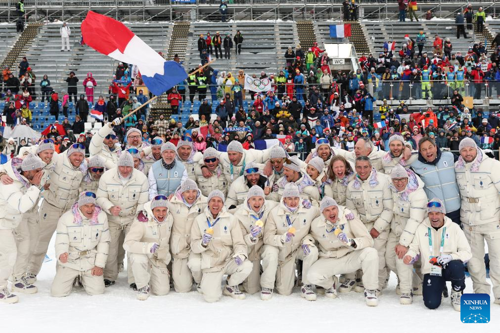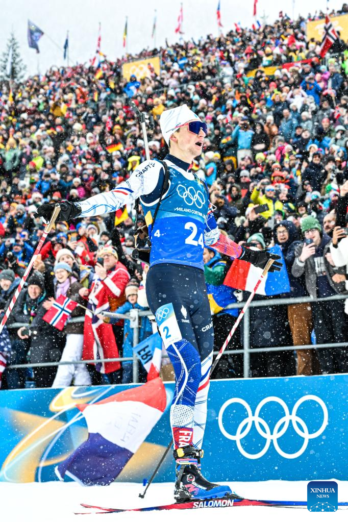 ANTERSELVA, Italy, Feb. 17 (Xinhua) -- France overcame a disastrous first leg that dropped them to last place, rallying to claim its first-ever Olympic gold medal in the men's 4x7.5km biathlon relay at the Milan-Cortina Games on Tuesday.