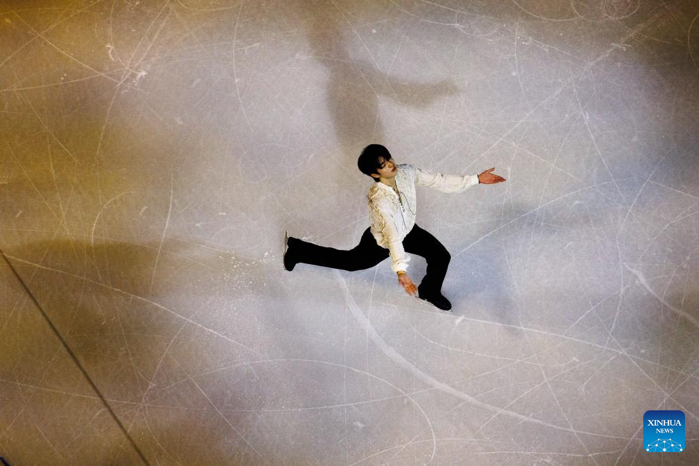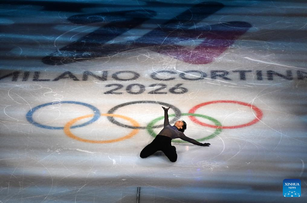 Cha Junhwan of South Korea performs during the gala exhibition of figure skating at the Milan-Cortina 2026 Olympic Winter Games in Milan, Italy, Feb. 21, 2026. (Xinhua/Chen Yichen)