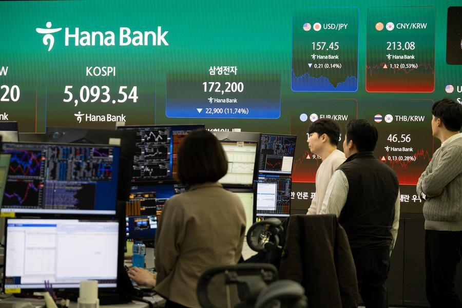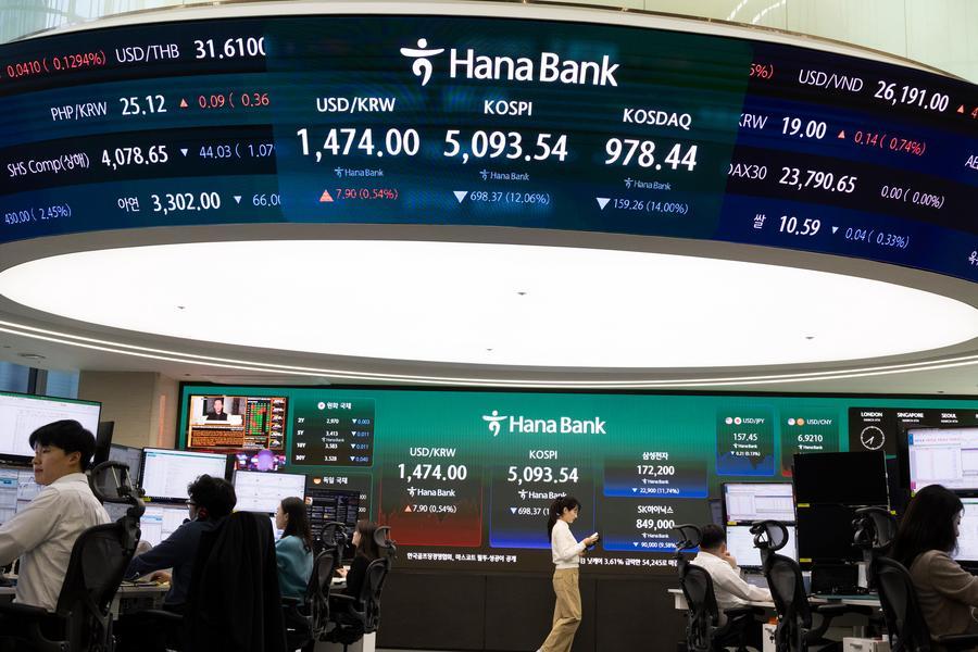 SEOUL, March 4 (Xinhua) -- South Korean stocks tumbled more than 12 percent on Wednesday amid circuit breakers, triggered by escalating Middle East conflict that led to panic selling for the second straight session.