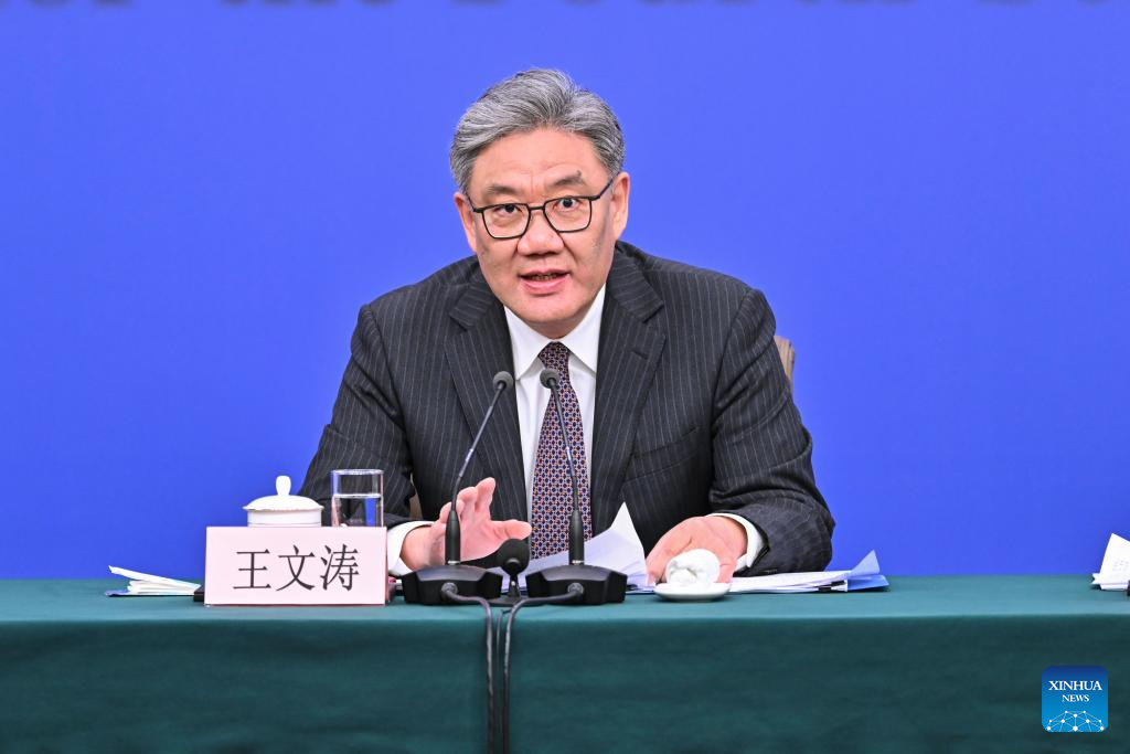 Chinese Commerce Minister Wang Wentao attends a press conference for the fourth session of the 14th National People's Congress (NPC) on economy in Beijing, capital of China, March 6, 2026. (Xinhua/Li Xin)