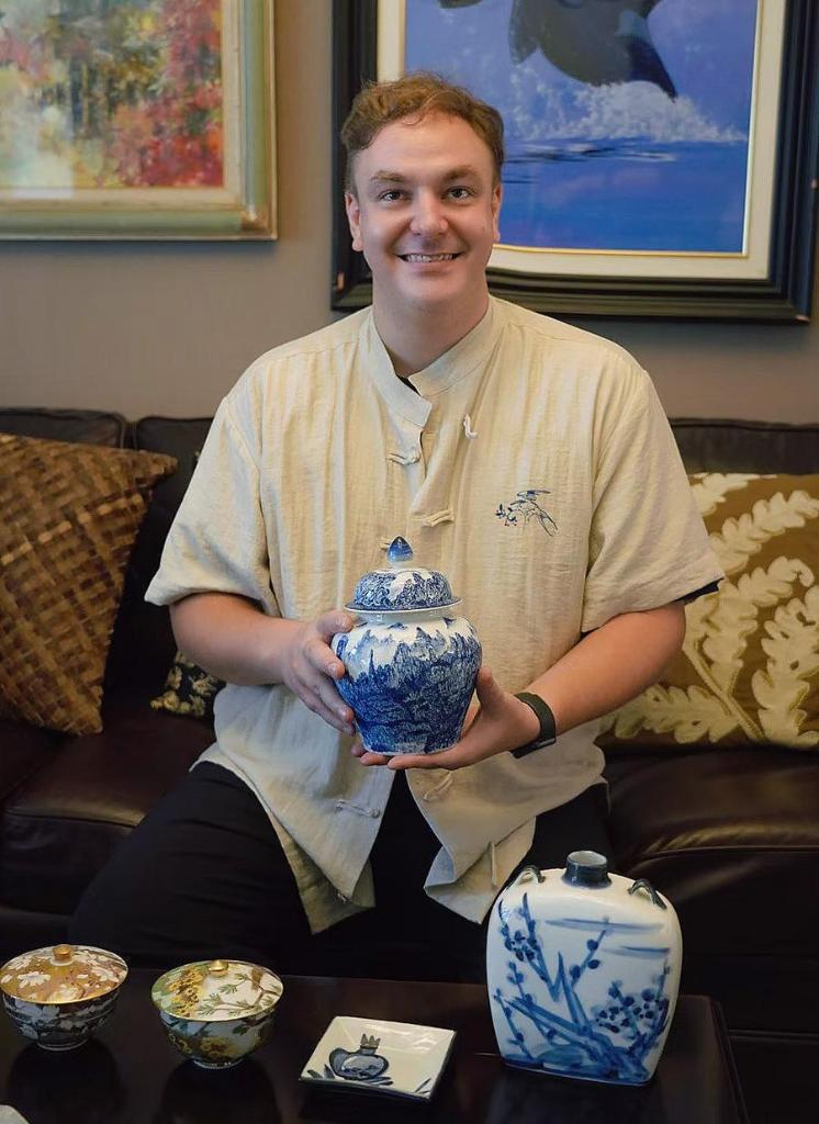 His studio is filled with Chinese elements, including antique furniture, a portrait of Confucius, and traditional ink landscape paintings. Each detail reflects Ribalta's deep appreciation for Chinese culture.