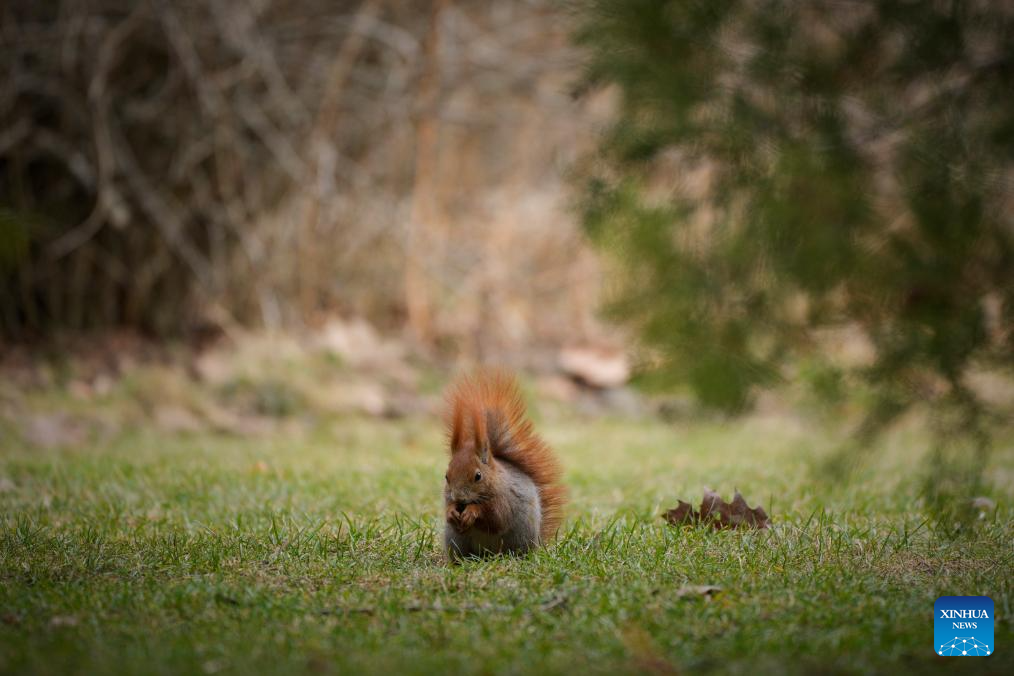 A squirrel forages at the Lazienki Park in Warsaw, Poland, on March 10, 2026. (Photo by Jaap Arriens/Xinhua)