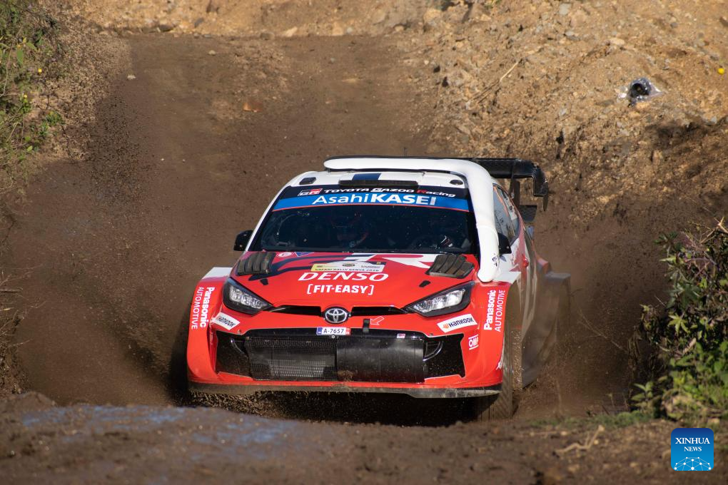 Toyota Gazoo Racing World Rally Team 2's Finnish driver Sami Pajari and his co-driver Marko Salminen compete during the WRC Safari Rally Kenya 2026 in Naivasha, Nakuru county, Kenya, March 12, 2026. (Photo by Kevin Onnoka/Xinhua)