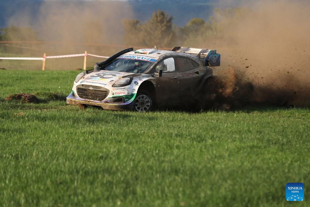 M-sport Ford World Rally Team's Irish driver Jon Armstrong and his co-driver Shane Byrne compete during the WRC Safari Rally Kenya 2026 in Naivasha, Nakuru county, Kenya, March 12, 2026. (Photo by Kevin Onnoka/Xinhua)