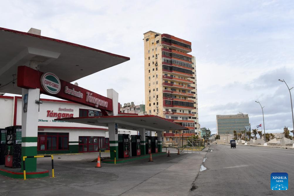 Photo taken on March 17, 2026 shows an out-of-service gas station in Havana, Cuba. Cuba's national power grid suffered a total blackout on Monday, and the process of restoring electricity is currently underway, according to the Electric Union of Cuba. (Photo by Joaquin Hernandez/Xinhua)