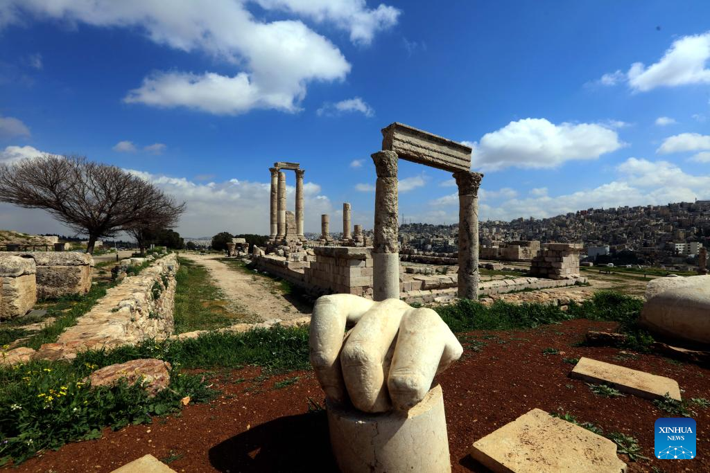This photo taken on March 16, 2026 shows a view of the archaeological site of Amman Citadel in Amman, Jordan. (Photo by Mohammad Abu Ghosh/Xinhua)