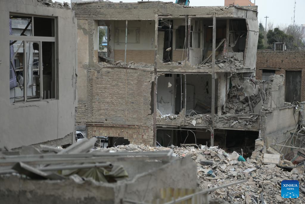 This photo taken on March 15, 2026 shows destroyed buildings at a residential area in Tehran, Iran. (Xinhua/Shadati)