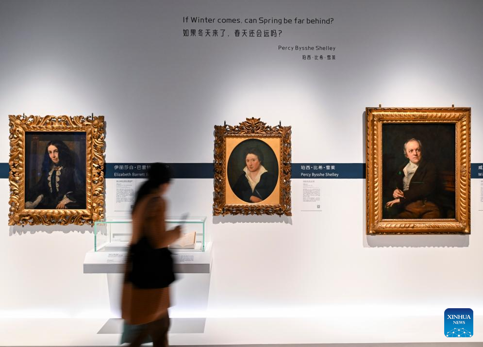 A woman visits the media preview of the exhibition "Writers Revealed: Treasures from British Collections and the National Portrait Gallery, London" at the Shanghai Museum in Shanghai, east China, March 17, 2026. The exhibition, held jointly by the Shanghai Museum and London's National Portrait Gallery, will open to the public from March 18. (Xinhua/Chen Haoming)