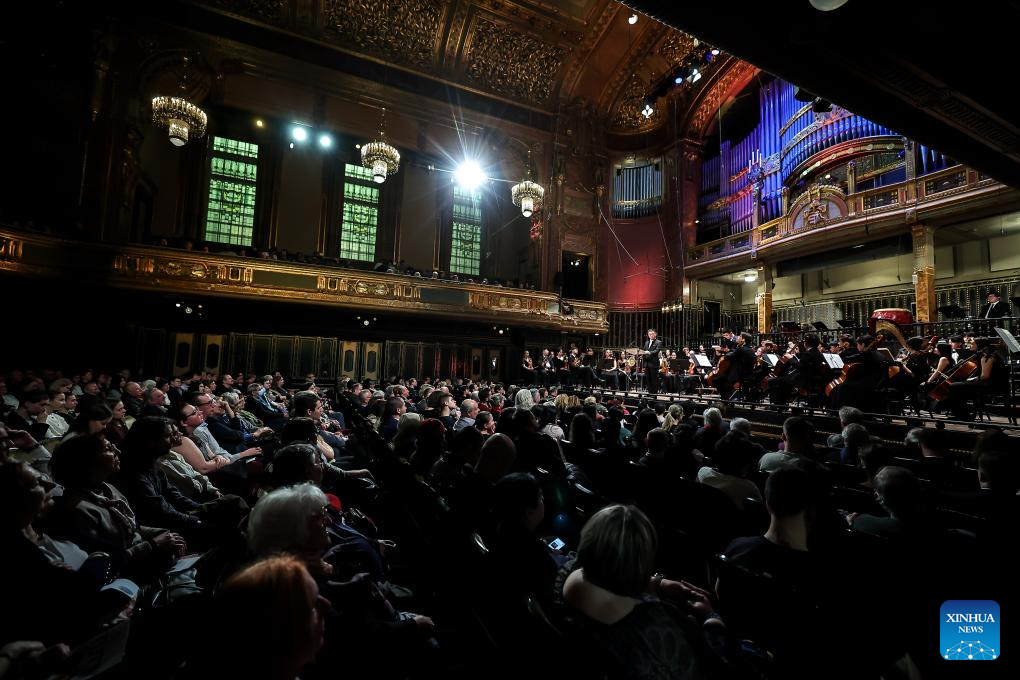 Musicians perform at a China-Hungary cultural exchange concert in Budapest, Hungary, March 25, 2026. The concert, titled "TUTTI -- China-Hungary Cultural Exchange Concert," was held on Wednesday evening at the Liszt Academy of Music in Budapest, featuring a joint symphony orchestra of young musicians from the two countries. (Photo by David Balogh/Xinhua)