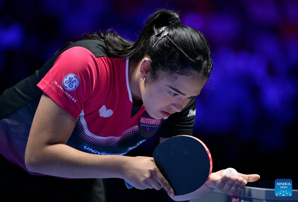 Hana Goda competes during the women's singles round of 16 match between Hana Goda of Egypt and Yuan Jia Nan of France at the ITTF Men's and Women's World Cup 2026 in Macao, China, April 3, 2026. (Xinhua/Cheong Kam Ka)