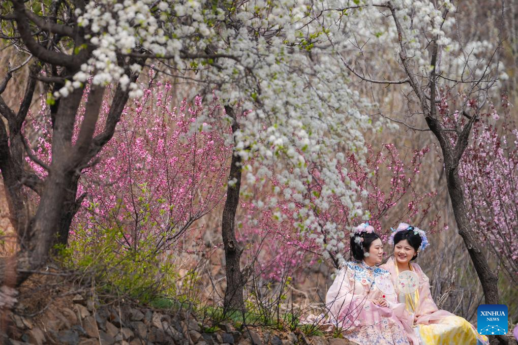 Tourists in traditional Chinese attire enjoy leisure time in Zouping, east China's Shandong Province, March 31, 2026. Qingming Festival, or Tomb-Sweeping Day, falls on April 5 this year. It is a traditional Chinese festival for people to pay tribute to the dead and worship their ancestors. The holiday also provides a short break for Chinese citizens as they engage in outdoor activities and sightseeing. (Photo by Dong Naide/Xinhua)