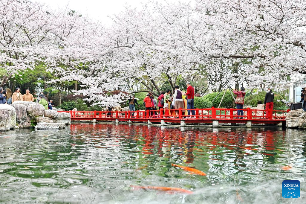 Tourists enjoy the scenery of cherry blossoms at a park in Jiaxing, east China's Zhejiang Province, March 31, 2026. Qingming Festival, or Tomb-Sweeping Day, falls on April 5 this year. It is a traditional Chinese festival for people to pay tribute to the dead and worship their ancestors. The holiday also provides a short break for Chinese citizens as they engage in outdoor activities and sightseeing. (Photo by Jin Peng/Xinhua)