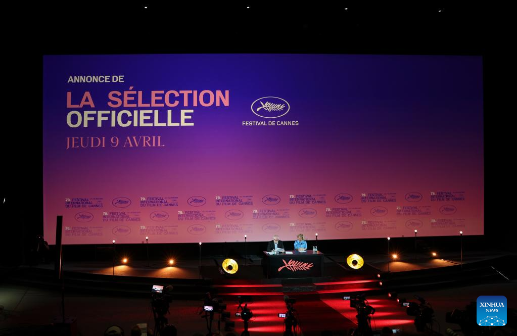 This photo taken on April 9, 2026 shows a press conference held by the Committee of Cannes Film Festival in Paris, France. The Committee of Cannes Film Festival held the press conference on Thursday to announce this year's official selection. (Xinhua/Wu Huiwo)