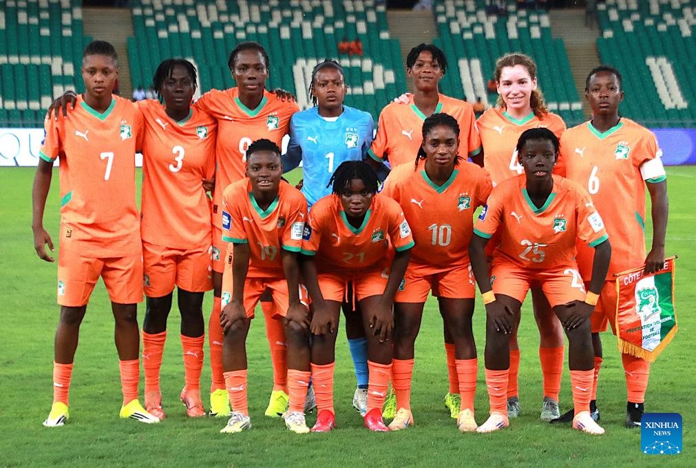 Players of Cote d'Ivoire pose for photos before an international women's football friendly match between Cote d'Ivoire and Mauritania in Abidjan, Cote d'Ivoire, on April 9, 2026. (Photo by Yvan Sonh/Xinhua)