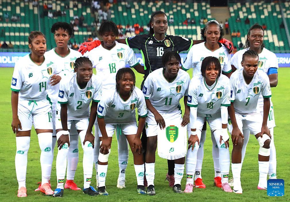 Players of Mauritania pose for photos before an international women's football friendly match between Cote d'Ivoire and Mauritania in Abidjan, Cote d'Ivoire, on April 9, 2026. (Photo by Yvan Sonh/Xinhua)