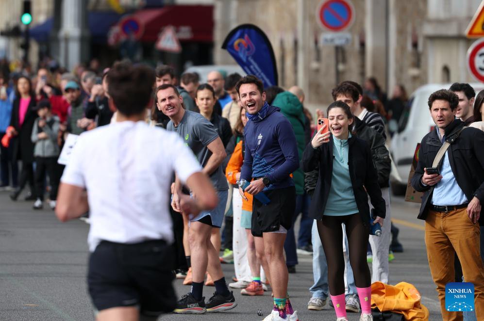 Participants run during the Paris Marathon 2026 in Paris, France, April 12, 2026. (Xinhua/Wu Huiwo)