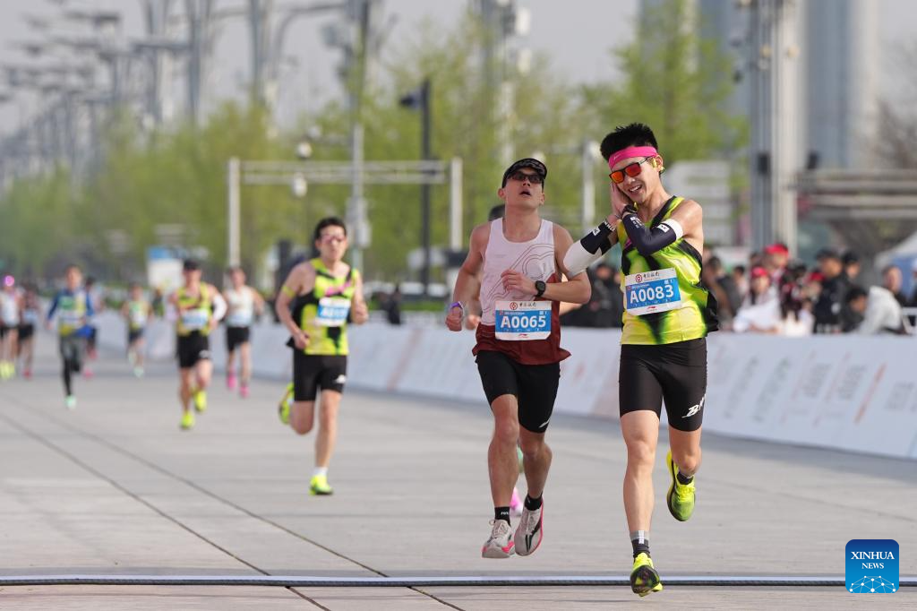 Participants start during the Beijing Half Marathon 2026 in Beijing, capital of China, April 12, 2026. (Xinhua/Ju Huanzong)