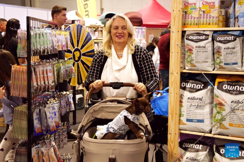 A visitor shops for pet supplies at the Sofia Zoo Expo 2026 in Sofia, Bulgaria, April 18, 2026. The Sofia Zoo Expo 2026 is scheduled from April 17 to 19 at the Inter Expo Center in Sofia. (Xinhua/Yao Yulin)