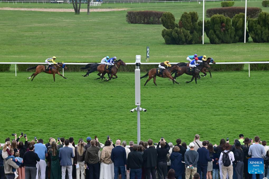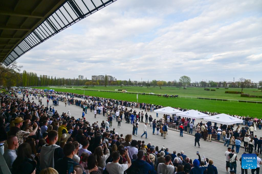 Spectators watch races at the Sluzewiec Racetrack in Warsaw, Poland, on April 19, 2026. The racetrack opened its 2026 season on April 19, which will run until November. (Photo by Aleksy Witwicki/Xinhua)