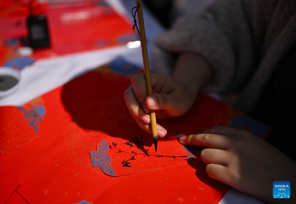 A participant creates a traditional Chinese painting at the 2026 International Chinese Language Day event in Almaty, Kazakhstan, April 20, 2026. A celebration event marking the 2026 International Chinese Language Day was held here Monday. (Xinhua/Li Renzi)