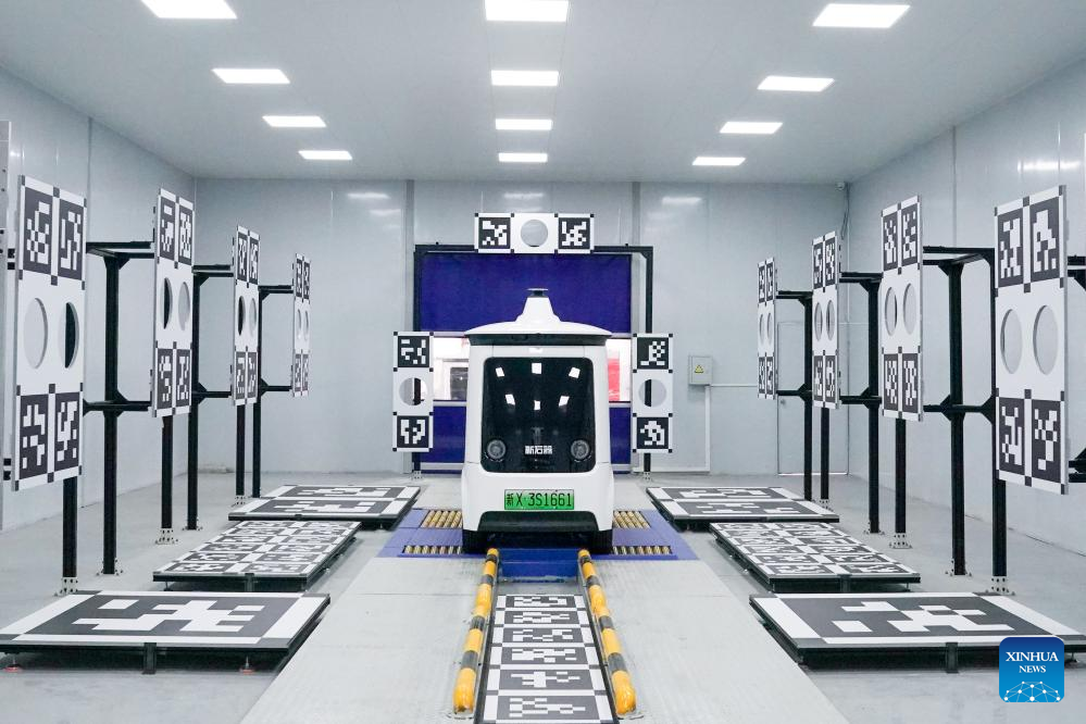 This photo taken on March 25, 2026 shows an autonomous vehicle production line of Neolix, an autonomous vehicle manufacturer, in Yancheng, east China's Jiangsu Province. In recent years, Jiangsu has focused on developing new quality productive forces, pursuing high-end, intelligent and globalized development, using advanced manufacturing to power high-quality economic growth.