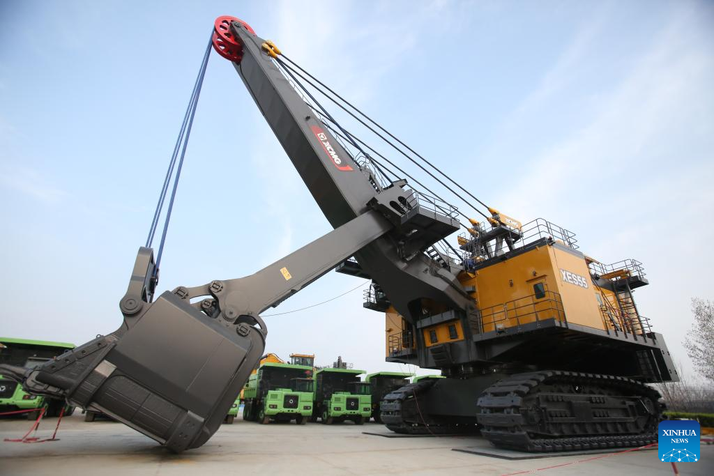 This photo taken on March 25, 2026 shows an electric mining excavator at Xuzhou Construction Machinery Group Co., Ltd. (XCMG) in Xuzhou City, east China's Jiangsu Province. In recent years, Jiangsu has focused on developing new quality productive forces, pursuing high-end, intelligent and globalized development, using advanced manufacturing to power high-quality economic growth.