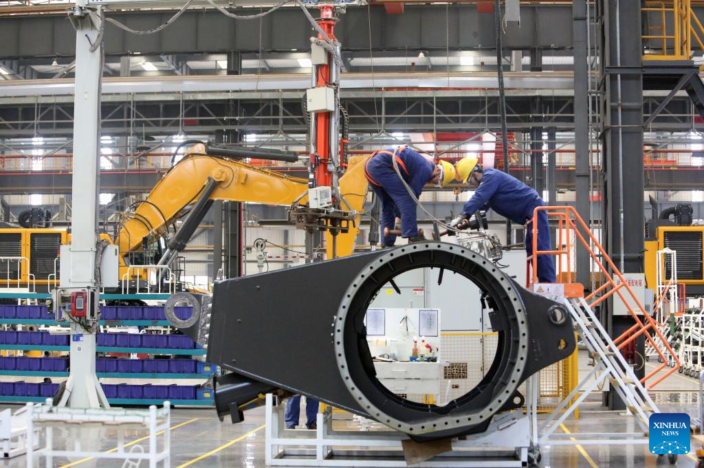 Staff members work at Xuzhou Construction Machinery Group Co., Ltd. (XCMG) in Xuzhou City, east China's Jiangsu Province, on March 25, 2026. In recent years, Jiangsu has focused on developing new quality productive forces, pursuing high-end, intelligent and globalized development, using advanced manufacturing to power high-quality economic growth.