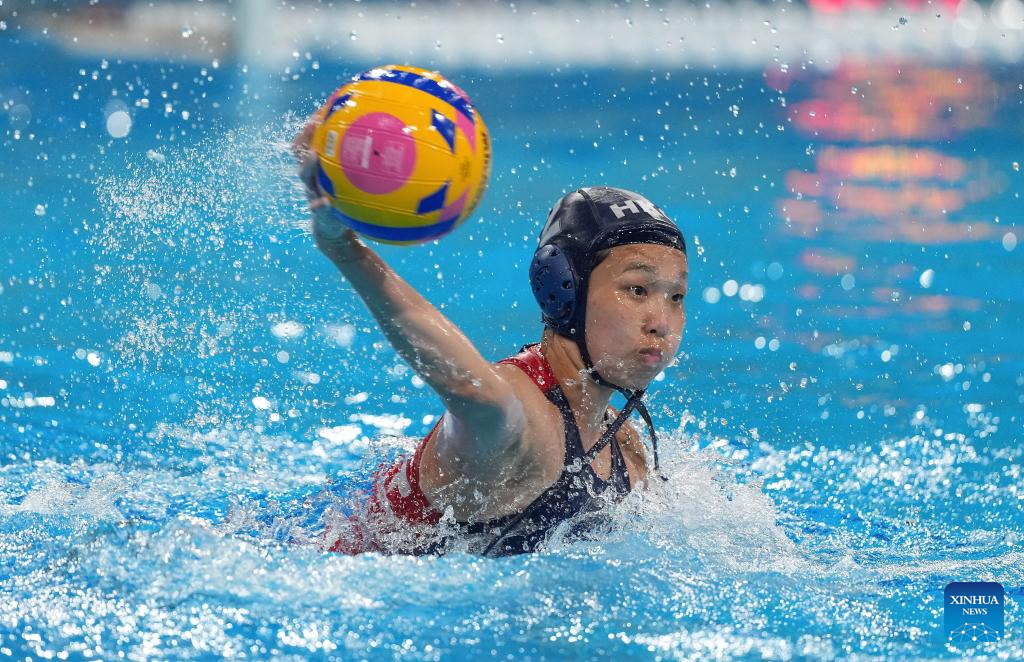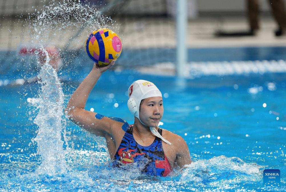 Ng Hau Laam Fran of China's Hong Kong competes during the water polo women's round-robin final match between China's Hong Kong and Thailand at the 6th Asian Beach Games in Sanya, south China's Hainan Province, April 24, 2026. (Xinhua/Chen Sihan)